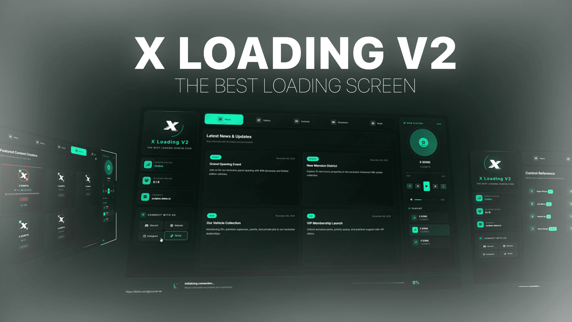 Transform your FiveM server's first impression with the most stunning loading screen ever created. Featuring a built-in music player, live player count, image gallery, keybinds display, news & changelog, live streamer integration, and full customizability.
